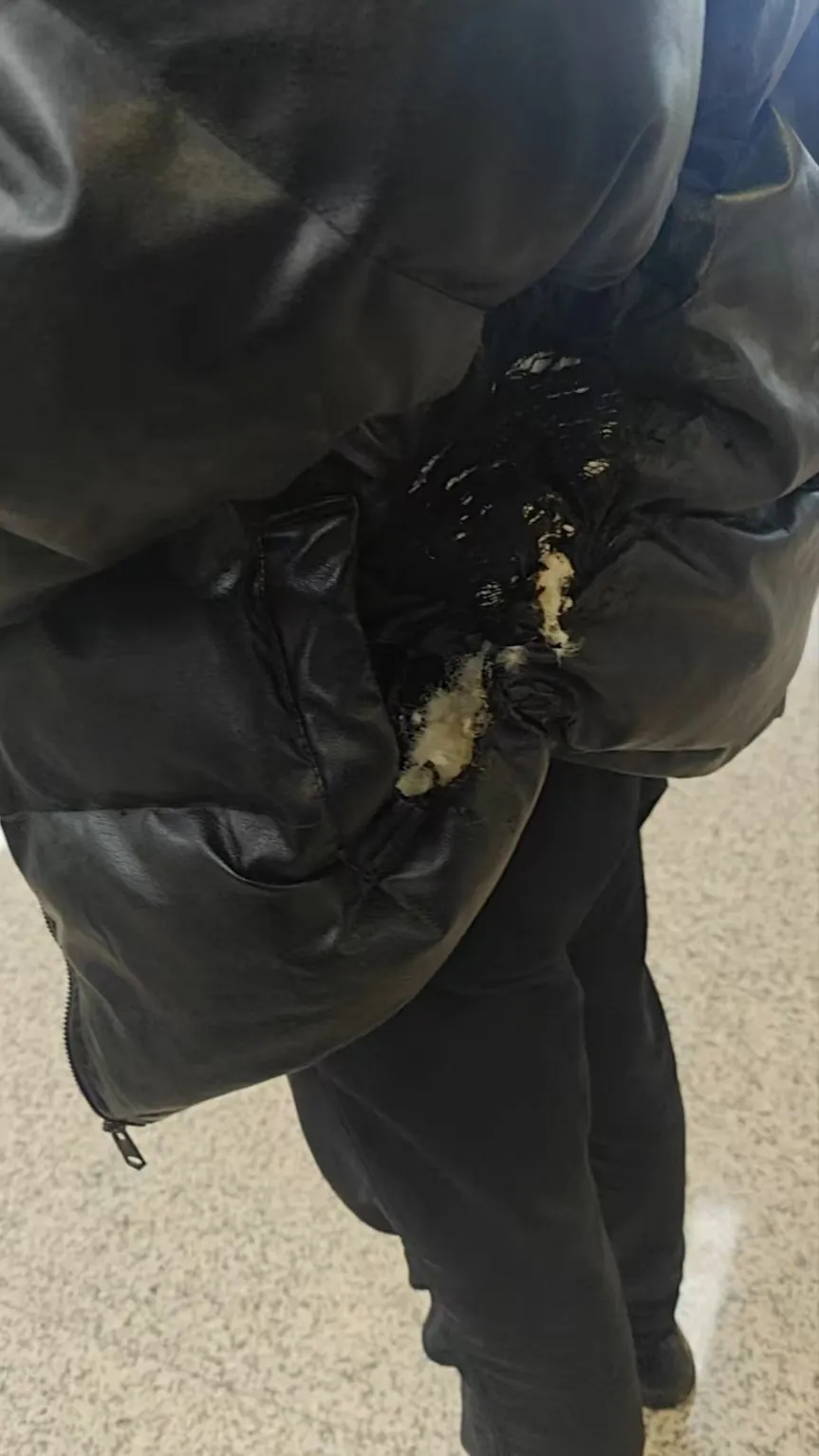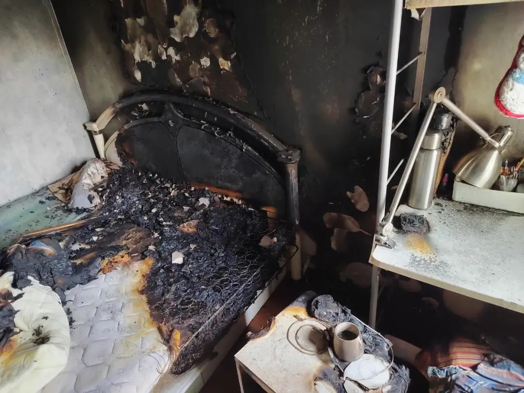 案例二:2024年12月,上海一位大先生将充电宝放在宿舍书桌上充电,约5个小时后充电宝俄然爆炸。